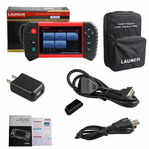 The Launch CRP TOUCH Pro is a diagnostic scan tool that runs on the Android. Derived from Launch x431 professional diagnostic platform, this full-function scan tool offers a complete OEM-specific coverage for 76 systems on 46 domestic, Asian and European makes including all software upgrades and instant technical response with the data logging function. Designed to put affordable diagnostics into the hands of technicians who want their own tool, CRP TOUCH Pro series scan tool offers full access to all vehicles and all Modules, for reading and clearing codes, live data and graphing. Additionally this tool includes reset, service and adaption capabilities for electronic parking brake, steering angle, oil lights, DPF, TPMS and battery registration. The CRP Touch Pro includes an internal battery, WiFi access to the Internet, MBZ and BMW proprietary adapters and integral camera and storage case
